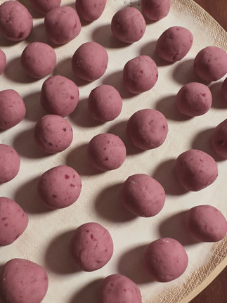 Mes filles sont là pour les vacances et nous avons profité du solstice pour faire un atelier Tang Yuan à la patate douce, à déguster dans un latte amande & sésame noir…